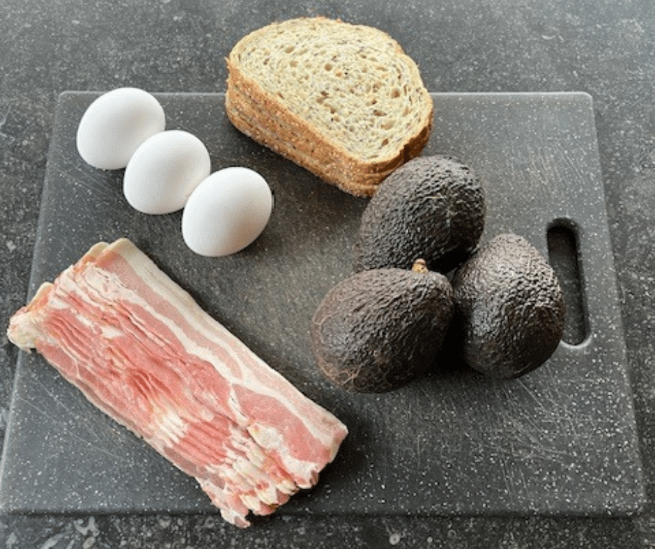 Leg 3 plakjes spek naast elkaar op een snijplankje en wikkel daar de avocado in.