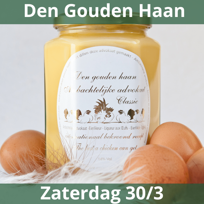 - Zaterdag 30/3: Den gouden haan proeverij (10:00 tot 17:00)