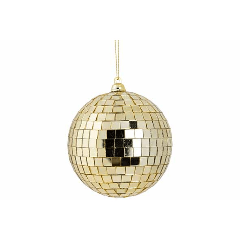 Voeg een vleugje glamour toe aan je kerstdecoratie met deze gouden disco kerstbal van 10 cm diameter. De bal is gemaakt van lichtgewicht kunststof en afgewerkt met reflecterende facetspiegeltjes die het licht prachtig weerkaatsen voor een sprankelend disco-effect.