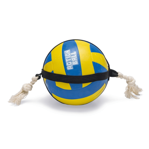 Beeztees Action Volleybal met Touw – Hondenspeelgoed – Rubber – Blauw/Geel – 48×20,4×20,4 cm