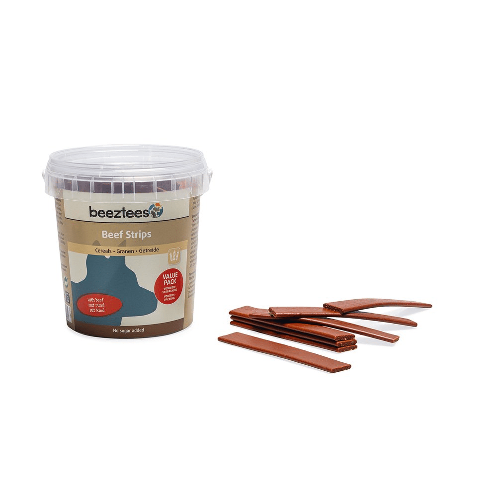 Beeztees Beef Strips zijn overheerlijke hondensnacks. Deze hondensnacks zijn ideaal om aan jouw hond te geven als beloning of tussendoortje. De snacks hebben een zachte structuur waardoor je ze makkelijk in kleine stukjes kunt breken. Bovendien is de zachte structuur prettig voor honden die geen sterke bijtkracht hebben of een gevoelig gebit. De snacks zijn gemaakt van granen met een overheerlijke rundsmaak en bevatten geen extra toegevoegde suikers en smaak- en geurstoffen.