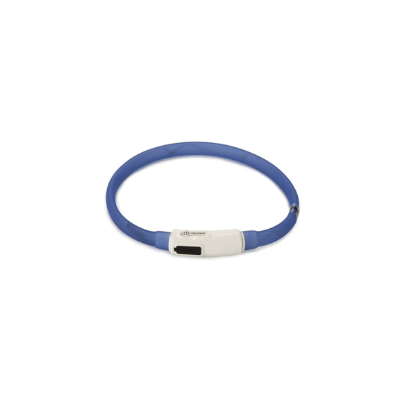 De Beeztees Safety Gear Dogini hondenhalsband is een siliconen halsband met usb aansluiting. De Dogini hondenhalsband geeft licht, waardoor je jouw hond eenvoudig in het donker kan herkennen en dat ook anderen jouw trouwe viervoeter kunnen zien. De verlichting van de halsband heeft drie standen: langzaam knipperend, snel knipperend en een continue verlichting. Zodra de verlichting verzwakt of het helemaal niet meer doet, kan je de halsband gemakkelijk opladen via de usb aansluiting. Deze halsband kan je zelf op maat knippen, waardoor het geschikt voor iedere hond. Let op: aan deze hondenhalsband kan geen hondenriem worden bevestigd.