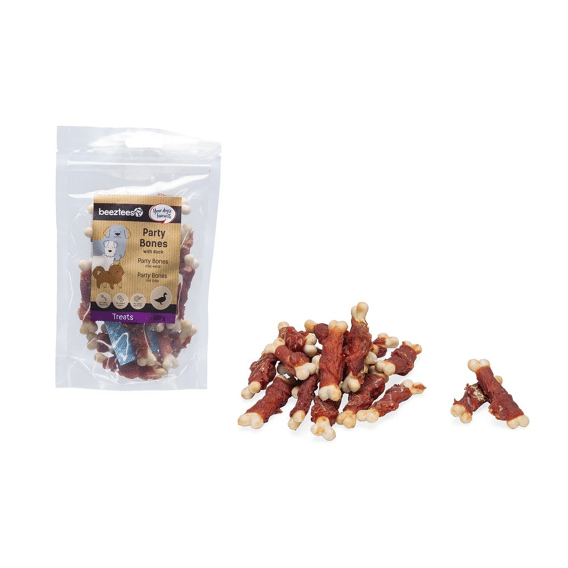 Beeztees Tasty Treats Party Bones met Eend – Hondensnack – 200 gram