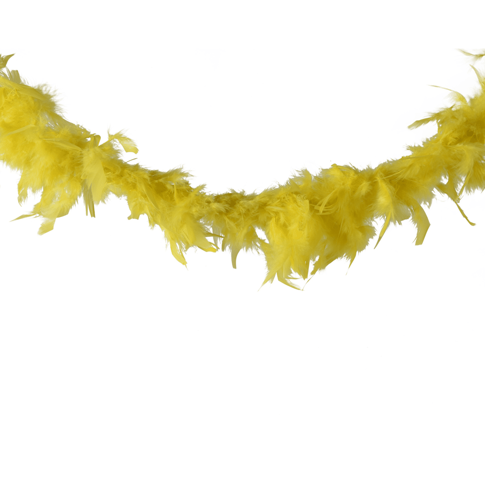 Decoris veren boa geel 150 cmLaat warme, uitnodigende accenten je interieur omarmen tijdens intieme momenten [[home]]. De Decoris veren boa is een speels decoratief stuk, gemaakt van natuurlijke kalkoenveren die het een zachte, luchtige uitstraling geven. Met een lengte van 150 centimeter en een opvallende geel kleur voegt deze boa in elk seizoen een speels en in het oog springend accent toe. Dankzij het lichte gewicht en het katoenen ophangkoord is de boa eenvoudig overal te plaatsen en creëer je steeds weer een gezellige sfeer. Perfect om terrasverwarming, wandplanken of knusse hoekjes een warme uitstraling te geven.• Lichtgewicht en flexibel in gebruik • Voorzien van een stevig katoenen ophangkoord • Natuurlijke kalkoenveren voor een levendig effect • Lengte van 150 cm en breedte van 13 cm voor veelzijdige decoratie
