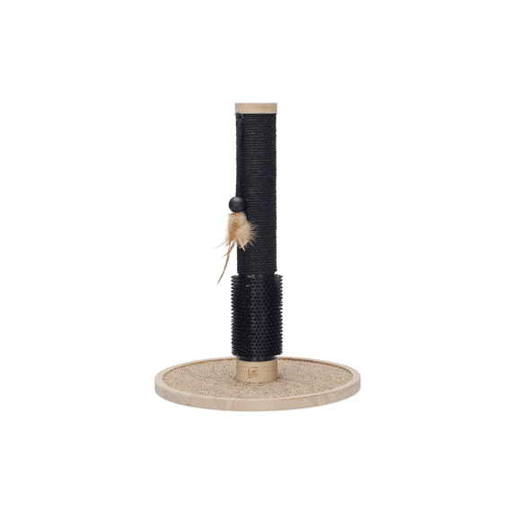 Laat jouw kat zijn of haar nagels en vacht verzorgen met de unieke Designed by Lotte krabpaal Fida. Deze stijlvolle krabpaal is gemaakt van rubberhout en heeft een stam omwikkeld met jutetouw voor verticaal krabben. Krabt jouw kat ook graag horizontaal? Dan is de sisalmat op de bodemplaat perfect. Daarnaast kan jouw kat zijn of haar vacht verzorgen door kopjes te geven aan de borstel onderaan de krabpaal. De rubberen nopjes masseren de vacht, wat heerlijk aanvoelt. Uiteraard kan jouw kat ook spelen met deze krabpaal, want aan de stam is een touw met een balletje en veer bevestigd. Om je vloer te beschermen tegen krassen worden er stickers van vilt meegeleverd. Door de zwarte tinten en het lichte rubberhout zal deze krabpaal een pronkstuk zijn binnen jouw interieur.