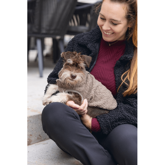 De Designed by Lotte hondentrui Madeleine is een zachte en trendy hondentrui, gemaakt van de populaire teddy stof. Heeft jouw trouwe vriend geen dikke vacht van zichzelf en het daardoor snel koud? Dan is deze hondentrui de ideale extra warmtebron voor jouw hond. Hondentrui Madeleine is naast functioneel, ook nog eens een waar mode item. De trui is eenvoudig aan te trekken en dicht te maken middels het klittenband aan de onderzijde van de trui. Aan de rugzijde van deze trui zit een afgewerkt gaatje, zo kun je gemakkelijk een hondenriem bevestigen aan de halsband of het hondentuigje. Met deze trendy hondentrui Madeleine kan jouw hond heerlijk warm met je mee wandelen in de koude wintermaanden!
