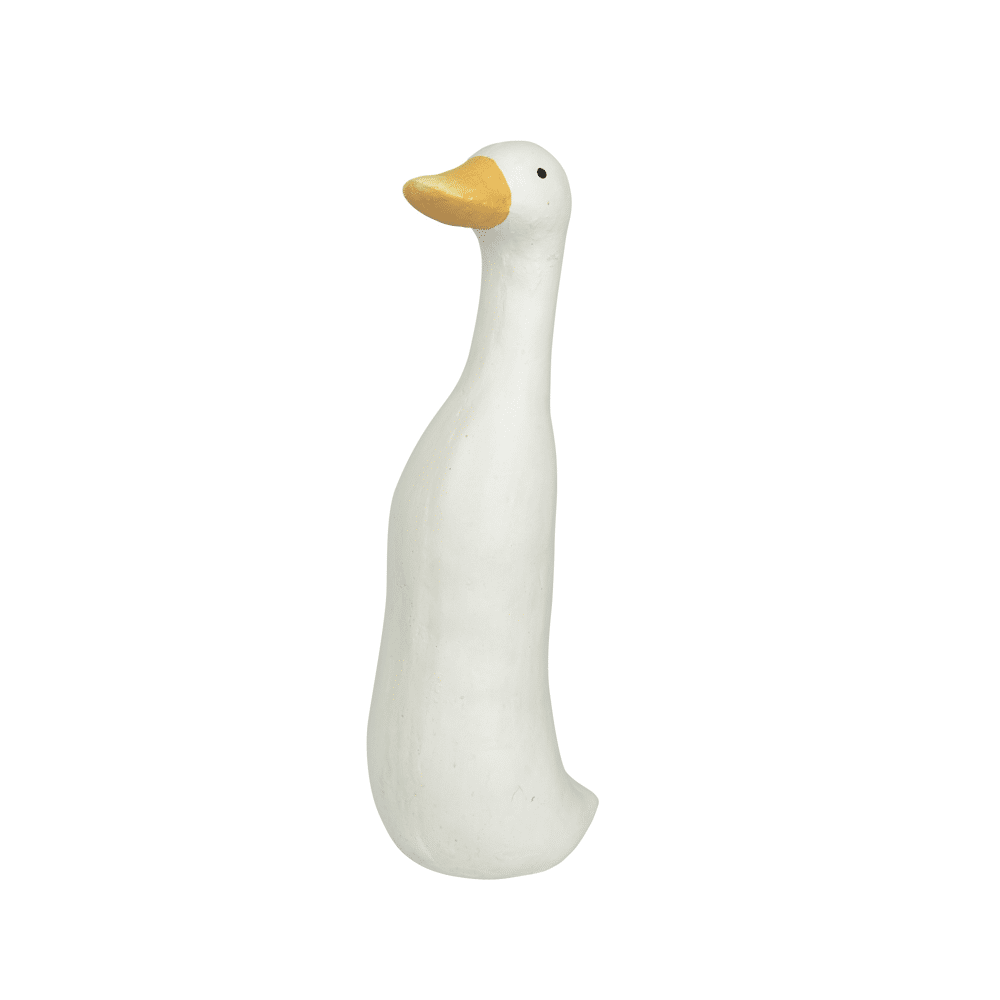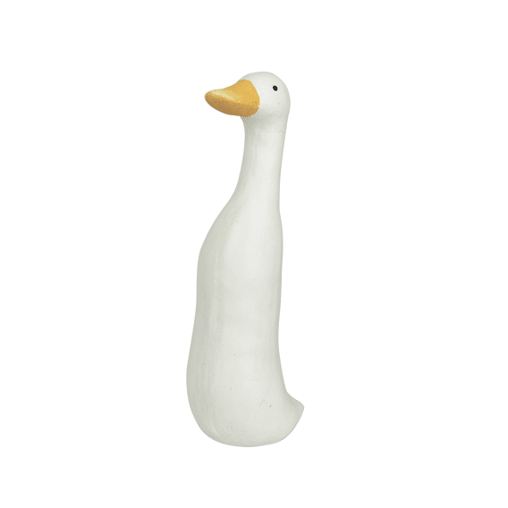 Decoris wit eend decoratief figuur, handgemaaktVoel de zachte rust van een country-ochtend met deze elegante Decoris eend als sfeervolle blikvanger in je interieur. Dit decoratieve figuur is vervaardigd uit magnesium en valt op door zijn slanke, natuurlijke vorm met een subtiele matte afwerking. Het wite oppervlak met een warme oranje snavel voegt een tijdloze charme toe aan elke ruimte met een country- of Scandinavische stijl. Dankzij het handgemaakte karakter heeft dit beeldje een uniek uiterlijk dat warmte en persoonlijkheid in je home brengt.• Lichtgewicht en makkelijk te verplaatsen • Onderhoudsvriendelijk dankzij het gladde oppervlak • Handgemaakt met oog voor detail • Geschikt voor binnen, zachte afwerking met een matte uitstraling