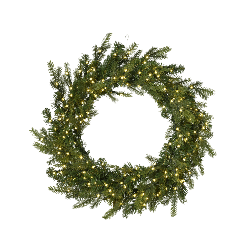 De krans is gemaakt van duurzaam PE/PVC-materiaal en combineert Real Needle en Soft Needle takken voor een realistische, volle en natuurgetrouwe look. Met een diameter van 80 cm vormt deze royale krans een echte blikvanger aan de voordeur, muur of schouw. De warm witte micro LED-verlichting zorgt voor een zachte, klassieke gloed die perfect past bij de gezellige kerstdagen.