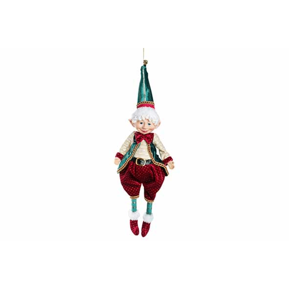 Figuur elf hanging bordeaux groen 25x10x h40cm textiel