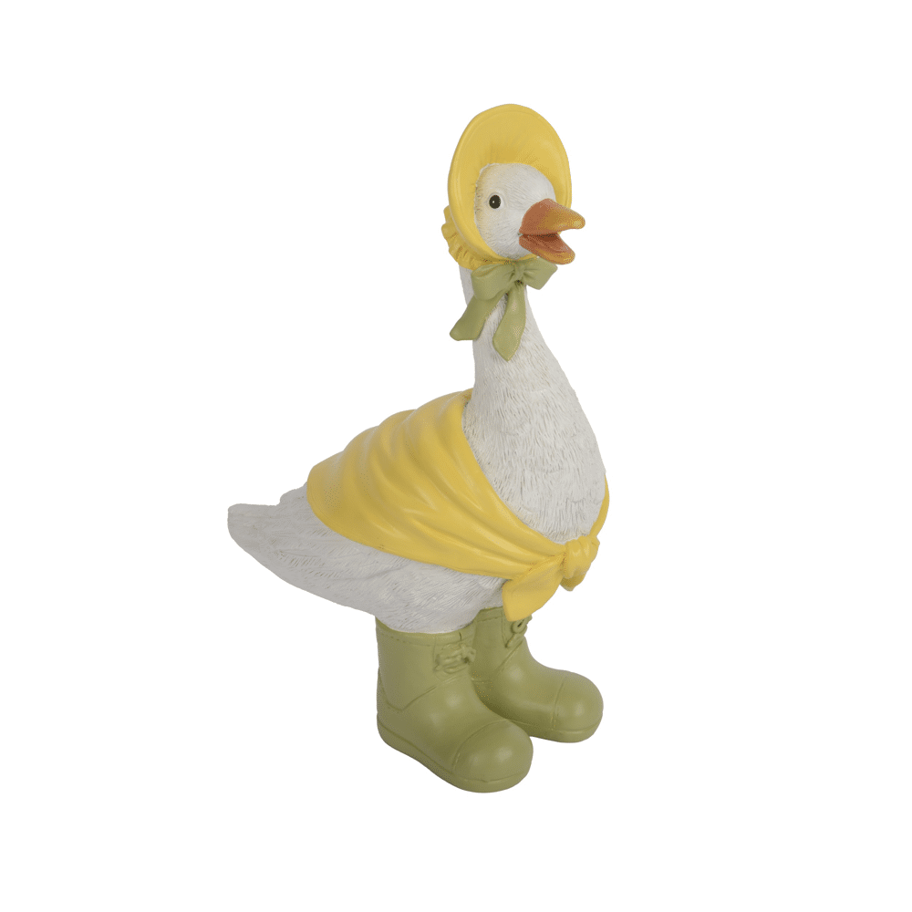 Decoris wit gans met gele cape en groene laarzenLaat een warm welkom binnenstromen met deze charmante gans, die een vrolijke zomerse sfeer brengt in elke hoek van je interieur of buitenruimte. Dit speelse decoratief figuur van polyresin heeft een levendige uitstraling dankzij de gele cape, bijpassende capuchon en groene laarzen. Met een hoogte van 31 cm en natuurlijke details voegt het een uniek en uitnodigend accent toe aan een country- of cottage stijl. De zachte witte kleur zorgt voor een rustgevende basis die moeiteloos samengaat met diverse interieurstijlen.• Lichtgewicht en eenvoudig te verplaatsen • Weerbestendig en geschikt voor binnen en overdekte buitenruimtes • Onderhoudsarm, gemakkelijk schoon te maken met een zachte doek • Stevige en duurzame afwerking voor langdurig gebruik