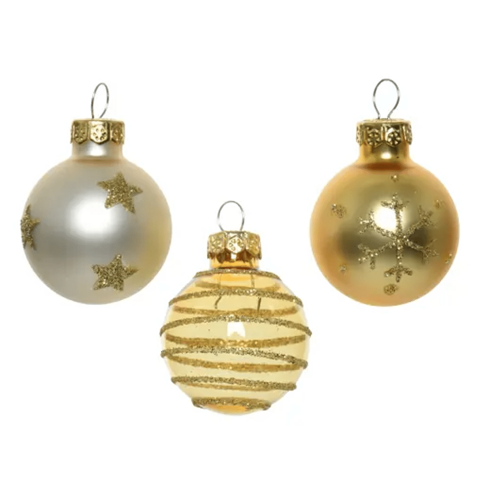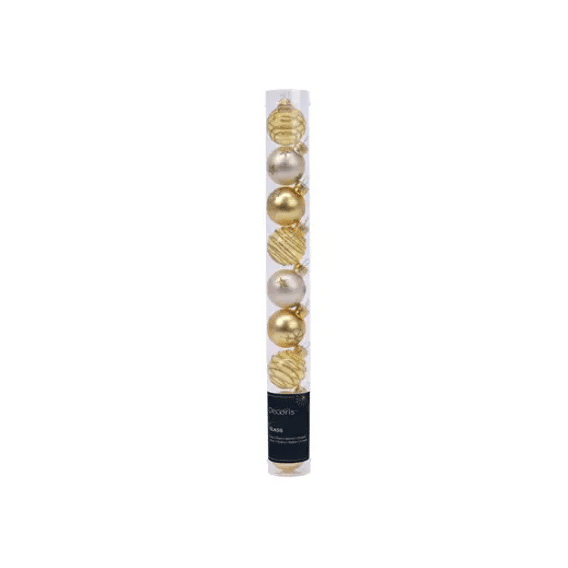 Decoris gedecoreerde glazen kerstbal parelMaak jouw kerstboom helemaal af met deze sprankelende Decoris gedecoreerde glazen kerstballen in parel en goud! Deze unieke kerstballen hebben een diameter van 3 cm en zijn gemaakt van hoogwaardig glas. De combinatie van een glanzende en matte afwerking zorgt voor een prachtig contrast, waardoor ze direct opvallen in jouw kerstdecoratie.De decoraties op de kerstballen, waaronder lijnen, sterren en sneeuwvlokken, voegen een feestelijke en winterse sfeer toe aan jouw boom. De gouden metalen kap zorgt voor een elegante afwerking en maakt het eenvoudig om de ballen op te hangen. Deze decoratieve kerstballen zijn machinaal vervaardigd en geven een verfijnde uitstraling aan elke kerstboom.Verander je kerstboom in een schitterend middelpunt en geniet van de magische ambiance die deze Decoris kerstballen bieden. Perfect voor een stijlvolle en moderne kerstdecoratie. Voeg ze vandaag nog toe aan jouw collectie!