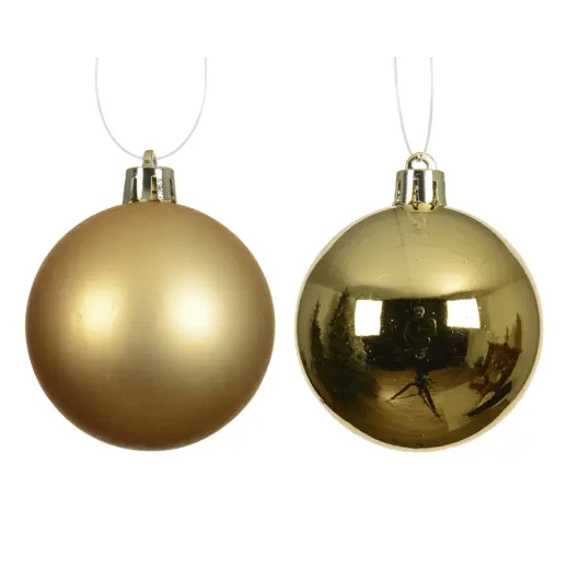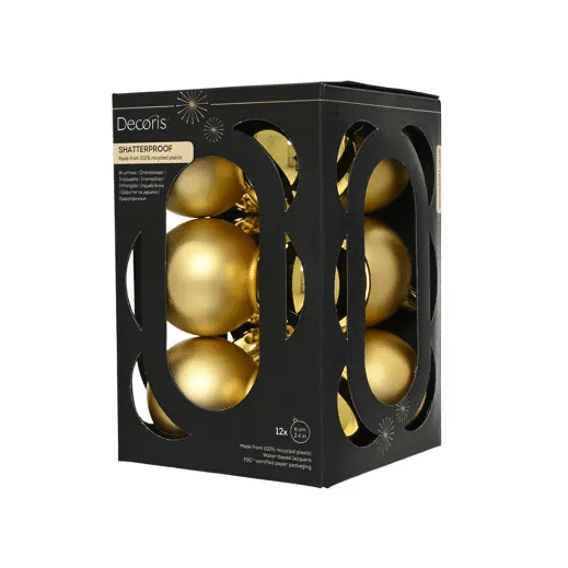 Decoris kerstbal shatterproof goudBreng de magie van kerst in je huis met onze Decoris kerstballen in gouden tinten. Deze shatterproof kerstballen zijn ideaal om je kerstboom mee te versieren zonder zorgen over breuk.- Diameter: 6 cm, perfect voor elke boomgrootte- Vervaardigd van polystyreen, met sparen milieuvriendelijke voordelen- Verpakt in plasticvrije verpakking, perfect voor een duurzame kerst- Shatterproof: geniet van een veilige en stressvrije feestperiode- Afwerking: een mix van glanzend en mat voor een stijlvol contrast- Gouden kap met PS Cap voor een uniforme uitstraling- Ophanging aan een stevige draad voor eenvoudige bevestigingHet gerecyclede basismateriaal zorgt ervoor dat je de feestdagen kunt vieren met een groen hart. Laat jouw kerstboom schitteren en stralen met de perfecte balans tussen elegantie en duurzaamheid. Voeg deze prachtige gouden kerstballen toe aan jouw collectie en omring je met feestelijke vreugde!