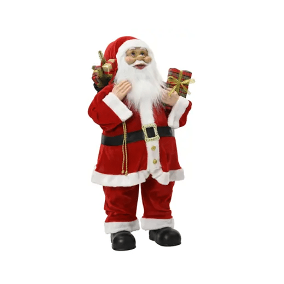 Decoris kerstmanDeze decoratieve kerstman is perfect om jouw huis met kerstvreugde te vervullen. Met zijn traditionele rode en witte kleur brengt hij direct de feestelijke sfeer bij jou thuis. - Gemaakt van duurzaam polyester voor langdurig plezier- Afmetingen: 35 cm lang, 28 cm breed en 80 cm hoog- Voorzien van feestelijke decoratie: een geschenkzak en cadeaupakket- Ideaal voor gebruik binnenshuisDeze kerstman kan eenvoudig worden neergezet waar je maar wilt, of het nu in de woonkamer, op de haltafel of ergens anders is. Dankzij de gedetailleerde afwerking en de meegeleverde cadeauaccessoires zoals de giftbag en giftbox, voegt deze versiering net dat beetje extra toe aan je kerstinterieur. Zijn formaat van 80 cm hoog maakt hem een opvallend en trots middelpunt in elke ruimte. Breng de magie van Kerstmis tot leven met dit prachtige decoratieve figuur.