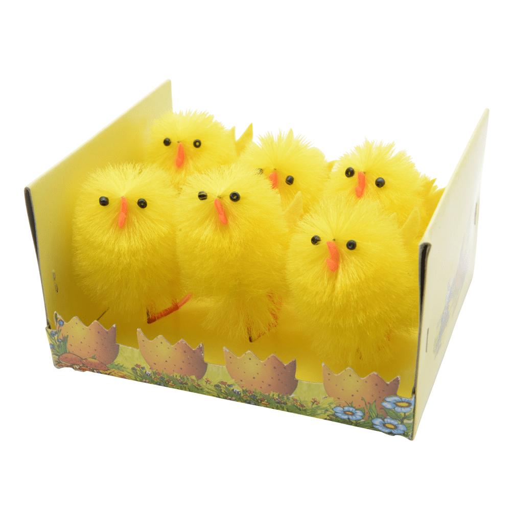 chenille kuikenset geel, 6 stuksEen zonnig groepje vrolijke kuikens zorgt voor een speelse sfeer tijdens warme lentedagen en Pasen, en verrijkt direct je interieur. Deze sets bestaat uit zes kleine chenille kuikens met een zachte, pluizige textuur die uitnodigt tot aanraken. Door hun compacte vorm (4 x 4,5 x 6,5 cm) zijn ze perfect om op een vensterbank, tafel of plank te plaatsen. Het felle geel kleurenschema en het natuurlijke ontwerp passen naadloos in zowel classic als eigentijdse home stijlen.• Lichtgewicht en eenvoudig te verplaatsen • Gemakkelijk schoon te maken dankzij de zachte chenille afwerking • Compact formaat, ideaal voor diverse plekjes in huis • Vrolijke seizoensdecoratie, perfect voor de lente en Pasen