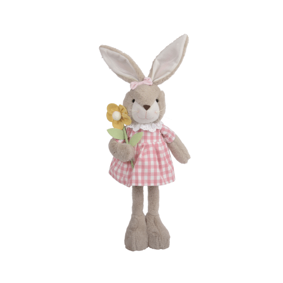 Decoris staande konijn roze met bloemNa een drukke dag brengt dit charmante staande konijn met bloem een zachte, warme sfeer in elke kamer. Dit decoratief figuur, gemaakt van polyester, is 60 cm hoog en heeft een speels, lichtroze geruit jurkje met een mooie bloemenaccent. De vriendelijke vorm en het gezellige ontwerp maken dit item tot een ideale sfeermaker in bijvoorbeeld de woonkamer of hal. Met zijn natuurlijke, zachte kleuren en uitnodigend design past dit konijn moeiteloos in een stijlvol, huiselijk interieur.- Lichtgewicht en gemakkelijk te verplaatsen - Onderhoudsarm materiaal - Stabiele staande vorm - Geschikt als seizoensdecoratie en sfeermaker