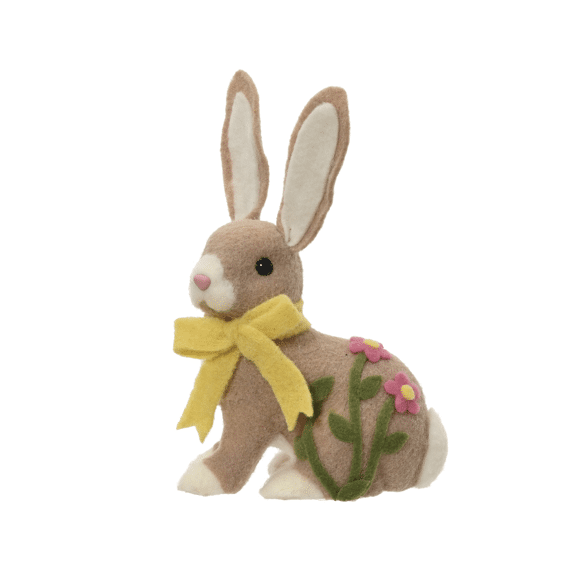 Decoris bruin konijn met strik en bloem, 20x12x30 cmBreng een warme en uitnodigende sfeer in je home met dit handgemaakte konijn van Decoris. Dit elegante beeldje is gemaakt van zacht vilt en komt in een natuurlijke bruine tint. De verfijnde details, zoals de geel strik en kleurrijke bloemen, geven het konijn een speelse en charmante uitstraling. Dankzij het compact formaat past dit decoratief object perfect op een plank, vensterbank of bijzettafel. Het stijlvolle ontwerp sluit naadloos aan bij een country of romantisch interieur.• Gemaakt van zacht vilt • Afmetingen: 20 cm lang, 12 cm breed, 30 cm hoog • Met decoratief strik en bloemen • Geschikt voor binnen gebruik