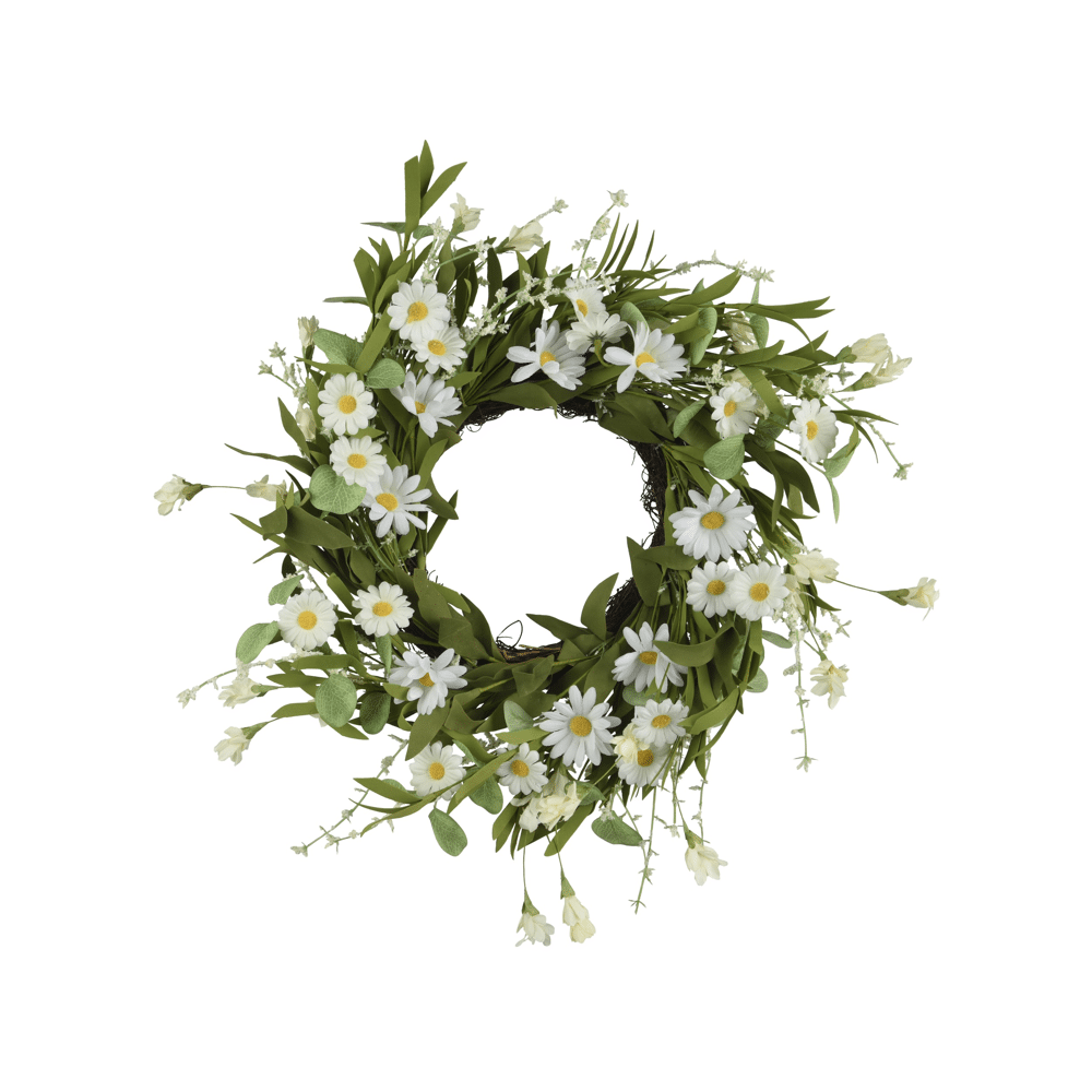 Everlands Krans Daisy/Wild Flower – wit – Ø 55 cmEen frisse, natuurlijke sfeer straalt uit deze met bloemen gevulde krans met een diameter van 55 cm. Deze witte polyester krans is ontworpen met 30 bladeren en is decoratief afgewerkt met madeliefjes en wilde bloemen op een natuurlijke ringbasis. De volle vorm en het duurzame, deels gerecyclede materiaal geven de krans een moderne uitstraling die bij diversen interieurstijlen pakken. Een onderhoudsarme keuze die altijd perfect blijft.• Geen water nodig en eenvoudig schoon te houden • Blijft het hele jaar door mooi en fris • Gemaakt van duurzaam, deels gerecycled polyester • Volle krans met een natuurlijke uitstraling en heldere witte tinten Combineer met andere Everlands kransen voor sfeervolle, onderhoudsvrije decoratie.
