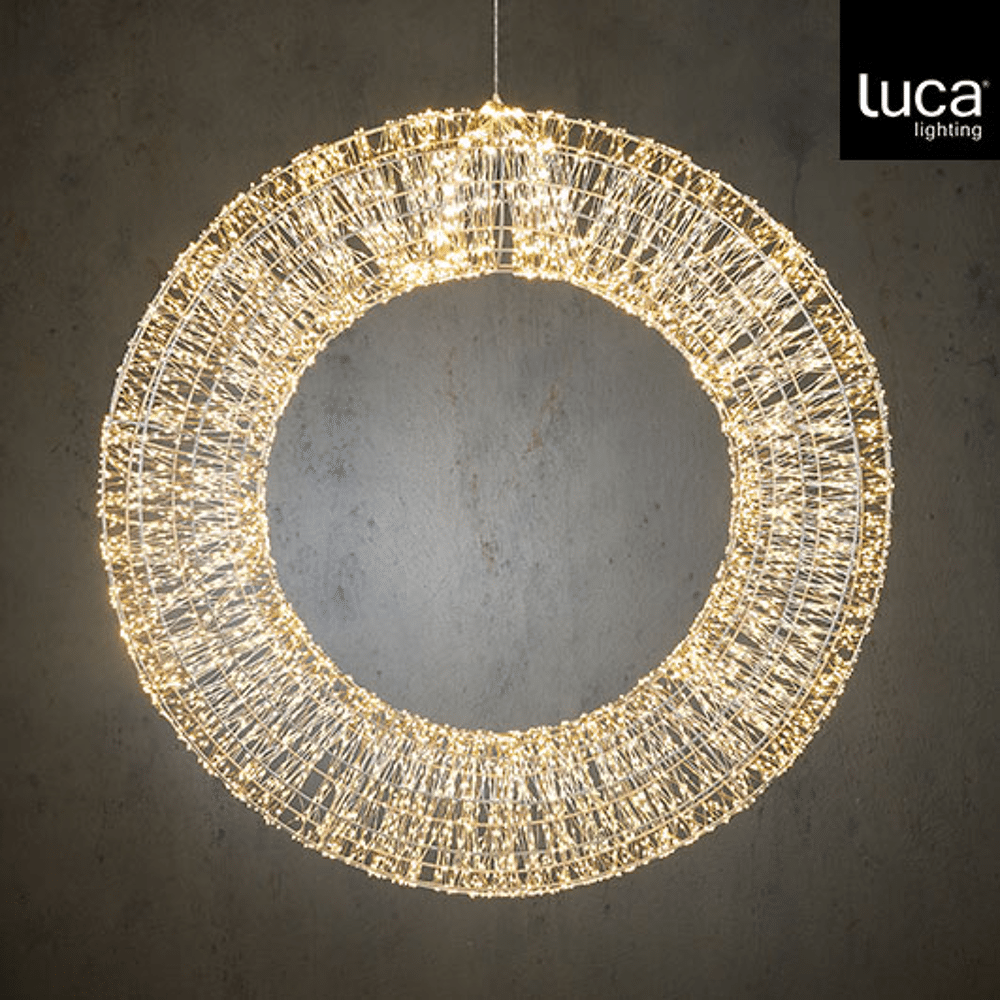 Maak een indrukwekkend statement met deze grote zilveren LED-krans, rijkelijk voorzien van 6000 klassiek witte LED-lichtjes. De uitzonderlijk volle lichtverdeling creëert een luxueuze, sprankelende uitstraling die elke ruimte onmiddellijk sfeer geeft. Dankzij de IP44-bescherming is de krans perfect geschikt voor zowel binnen als buiten—ideaal voor gevels, voordeuren, etalages of feestelijke decoraties.