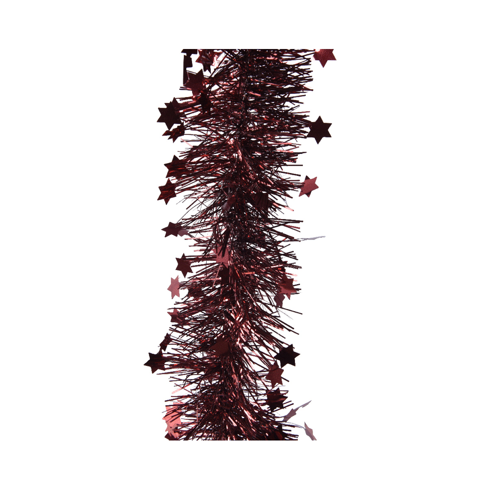 Decoris Lametta guirlande ossenbloed Met de Decoris Lametta guirlande in de kleur ossenbloed breng je direct een feestelijke en warme sfeer in huis. Deze prachtige decoratie is perfect voor het versieren van je kerstboom of het toevoegen van extra flair aan je interieur. - Kleur: Ossenbloed, een rijke rode tint die perfect aansluit bij de kerstsfeer - Lengte: 270 cm voor royaal decoreren - Diameter: 9 cm voor opvallende aanwezigheid - Materiaal: Gemaakt van PET voor een glanzende afwerking - Decoratie: Mix van glanzende slierten met sterren voor een sprankelend effect - Afwerking: Glanzend voor extra kerstglans Deze Lametta guirlande is ideaal om je kerstboom een extra dimensie te geven met zijn mix van fonkelende slierten en sterren. De lengte maakt het eenvoudig om rond de boom te draperen, maar ook als decoratie voor deurkozijnen of schouwen is het een echte blikvanger. Laat je interieur stralen met deze feestelijke guirlande van Decoris!