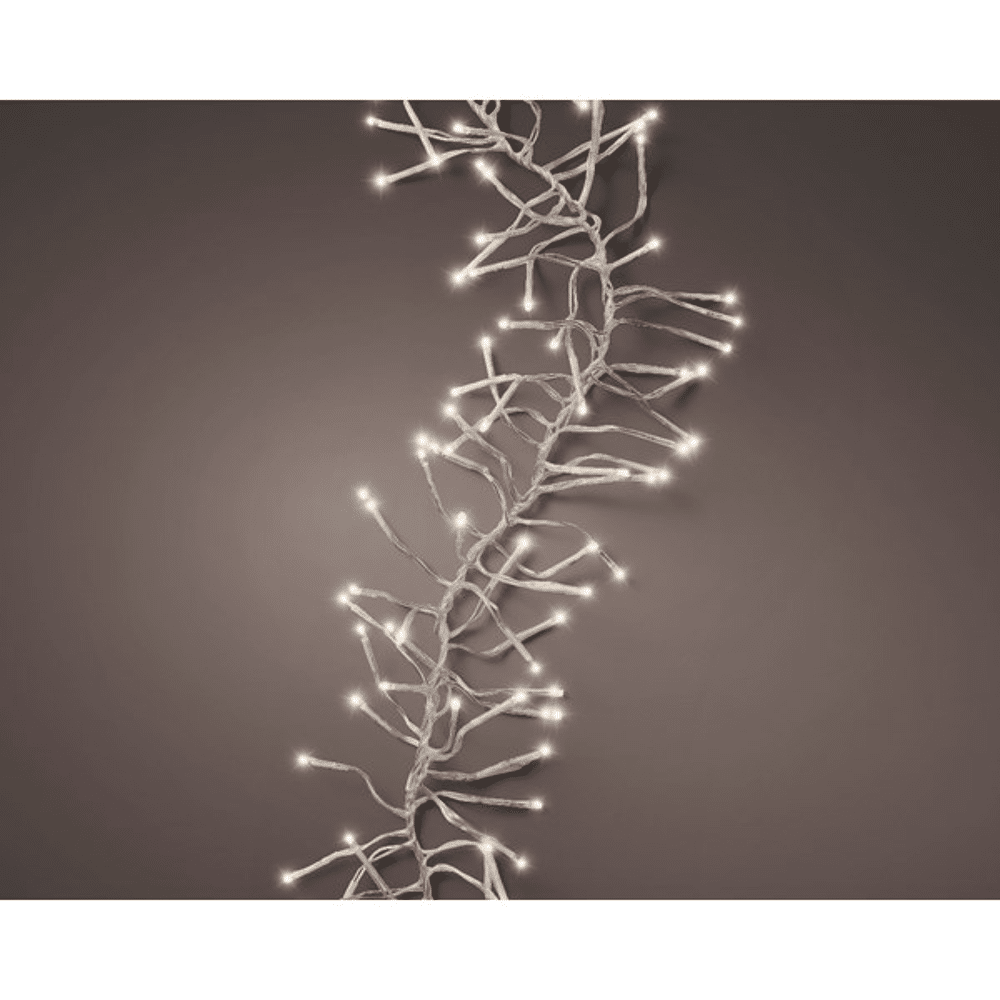 Breng je kerstboom of buitenruimte tot leven met de Lumineo LED cluster verlichting warm wit 1050 cm. Dankzij de 1128 warm witte LED-lampjes creëer je een sfeervol en rijk lichteffect dat je huis of tuin omtovert tot een winterwonderland.