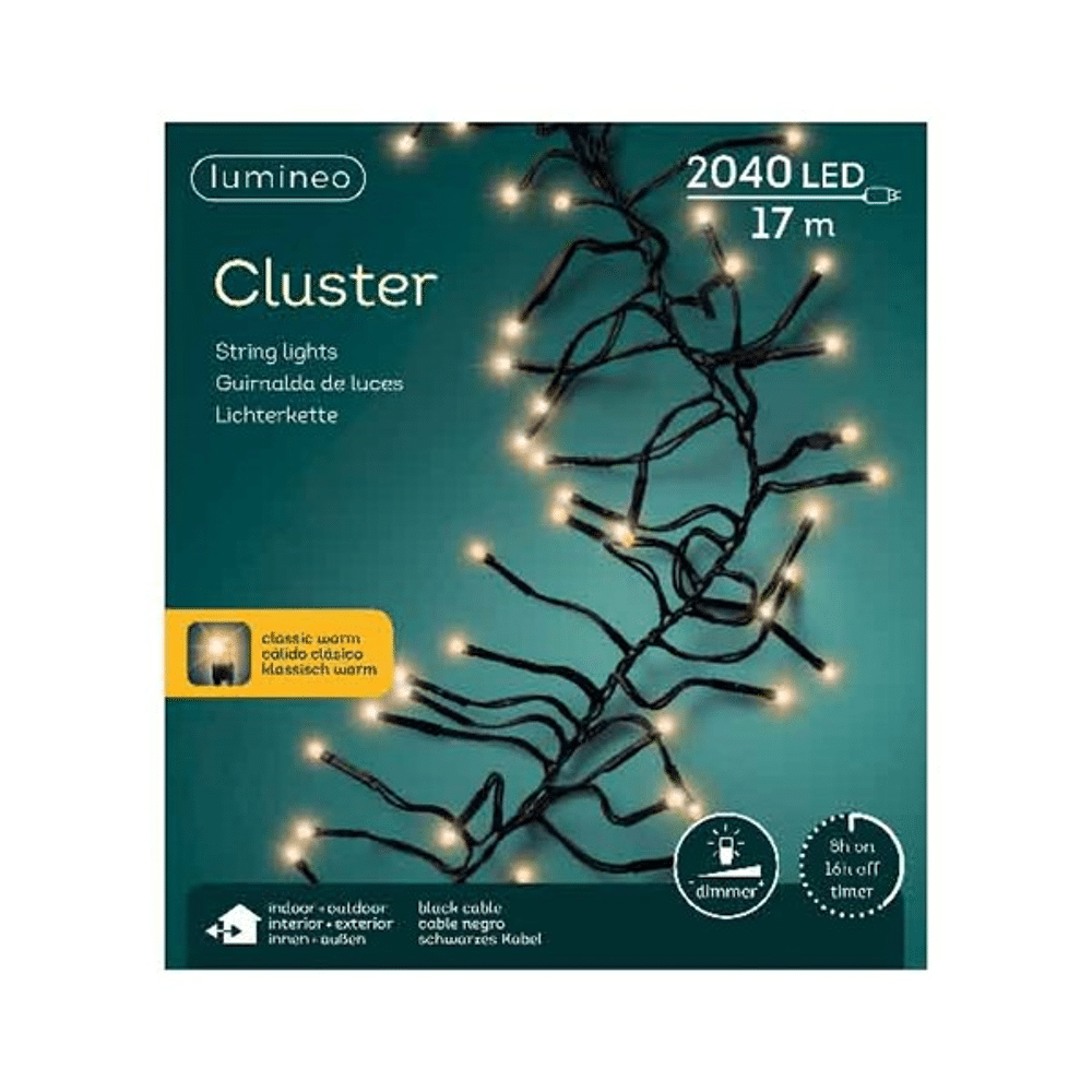 Deze LED cluster verlichting van 1900 cm is uitgerust met 2040 LED's in een klassiek warme tint, ideaal voor zowel binnen als buiten gebruik. De zwarte kabel biedt een stijlvolle uitstraling, perfect voor het verlichten van kerstbomen, tuinpaden of gevels. Geniet van een sfeervolle ambiance met deze energiezuinige en duurzame verlichting.