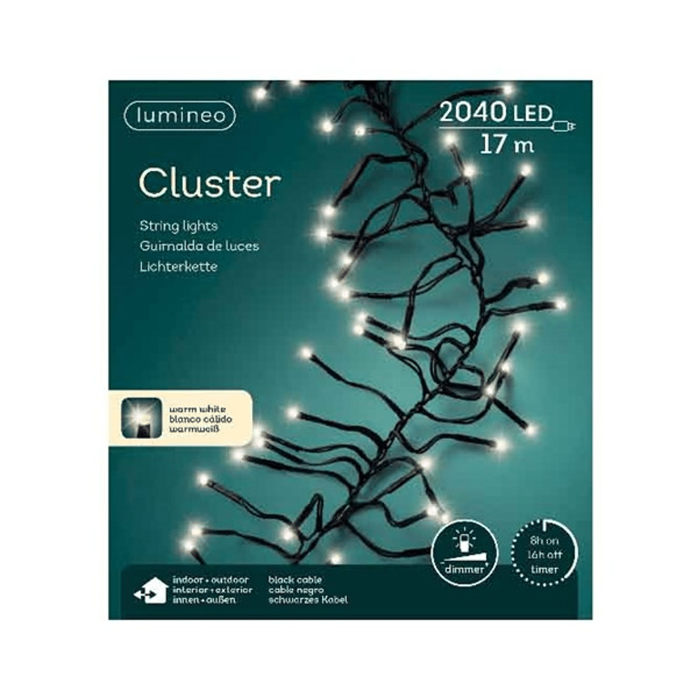 Creëer een warme, feestelijke sfeer met de Lumineo LED cluster verlichting warm wit 1900 cm. Deze verlichting is ideaal voor zowel binnen als buiten en maakt van jouw kerstboom of tuin een stralend middelpunt.