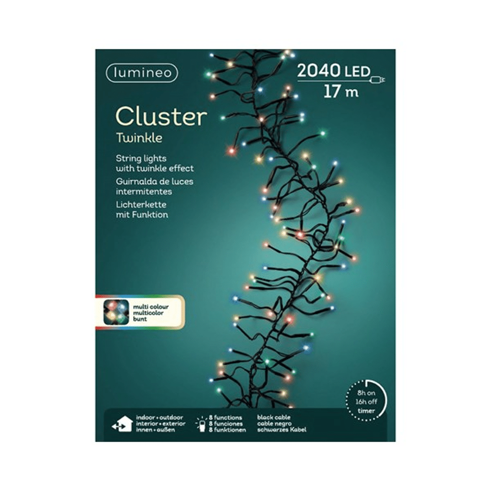 Maak je kerstboom onvergetelijk met de Lumineo LED cluster verlichting multicolor 1900 cm. Deze feestelijke verlichting brengt kleur, warmte en magie in huis én tuin.