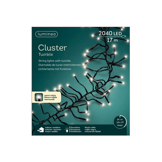 Ontdek de magie van de feestdagen met de Lumineo LED cluster verlichting warm wit 1900 cm. Deze sfeervolle verlichting tovert je kerstboom, tuin of balkon om tot een fonkelend winterwonderland.