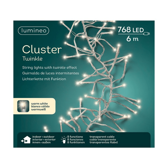 - **NOT FOUND** key: product.notifyMeModalProduct LED cluster - 700cm - 768 LED - twinkel - 8 functies - binnen & buiten - transparant/warm wit
