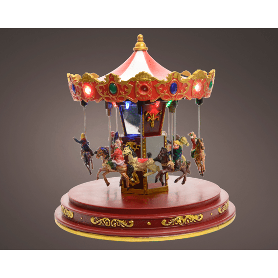 Deze prachtige LED draaiende carrousel brenL.24cm x B.24cm x H.25cm is hij perfect voor elke ruimte. De carrousel draait , heeft bewegende figuren en speelt sfeervolle muziek , waardoor hij een magische toevoeging is aan je kerstdecoratie. De carrousel werkt met een EU-stekkertype en is voorzien van een kabel van 180 cm . Deze decoratie is ideaal voor gebruik binnen en zorgt voor een vrolijke, feestelijke sfeer in huis.