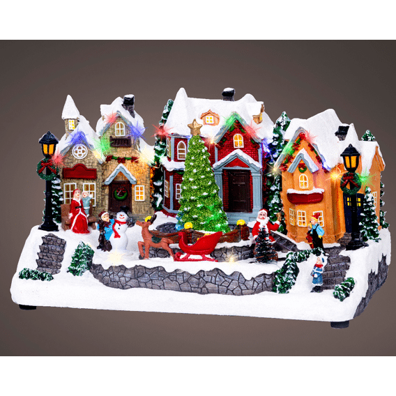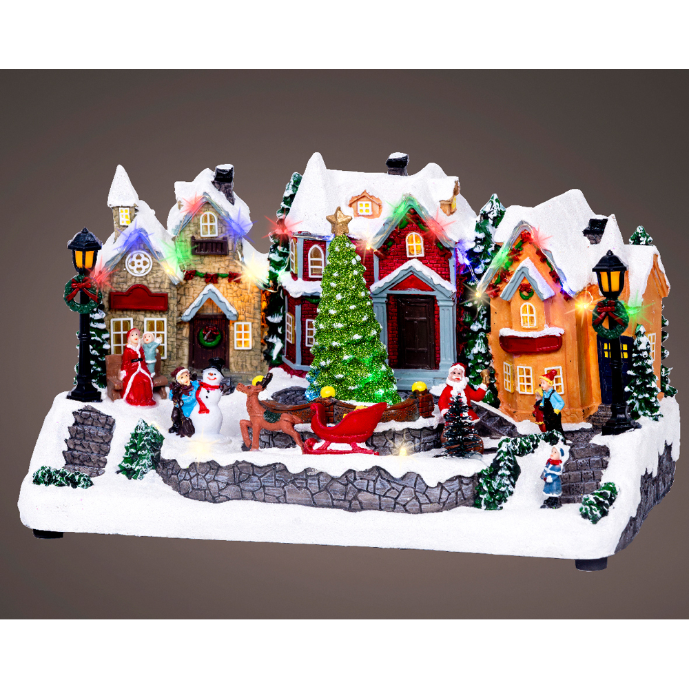 LED wintertafereel polyresin flashing - L.18.5cm W.32cm H.18.7cm