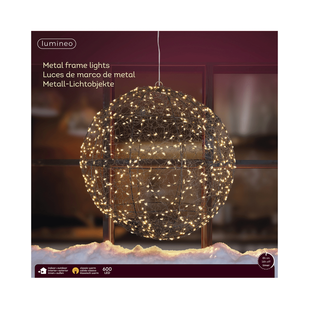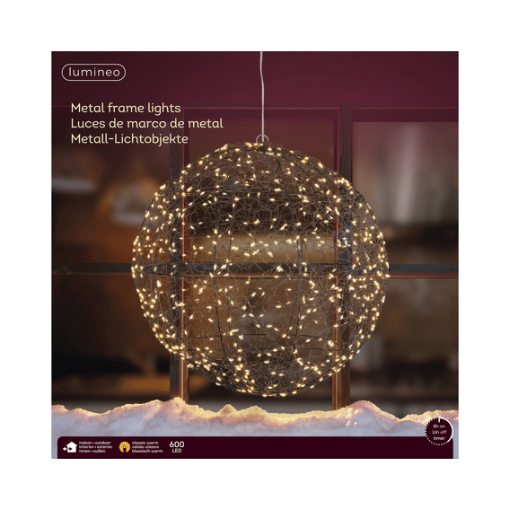 Lumineo Frame Light Ball – Klassiek Warm – Metaal – Ø 38 cm – 600 Micro LED’s – Buiten – Timerfunctie – Dimbaar
