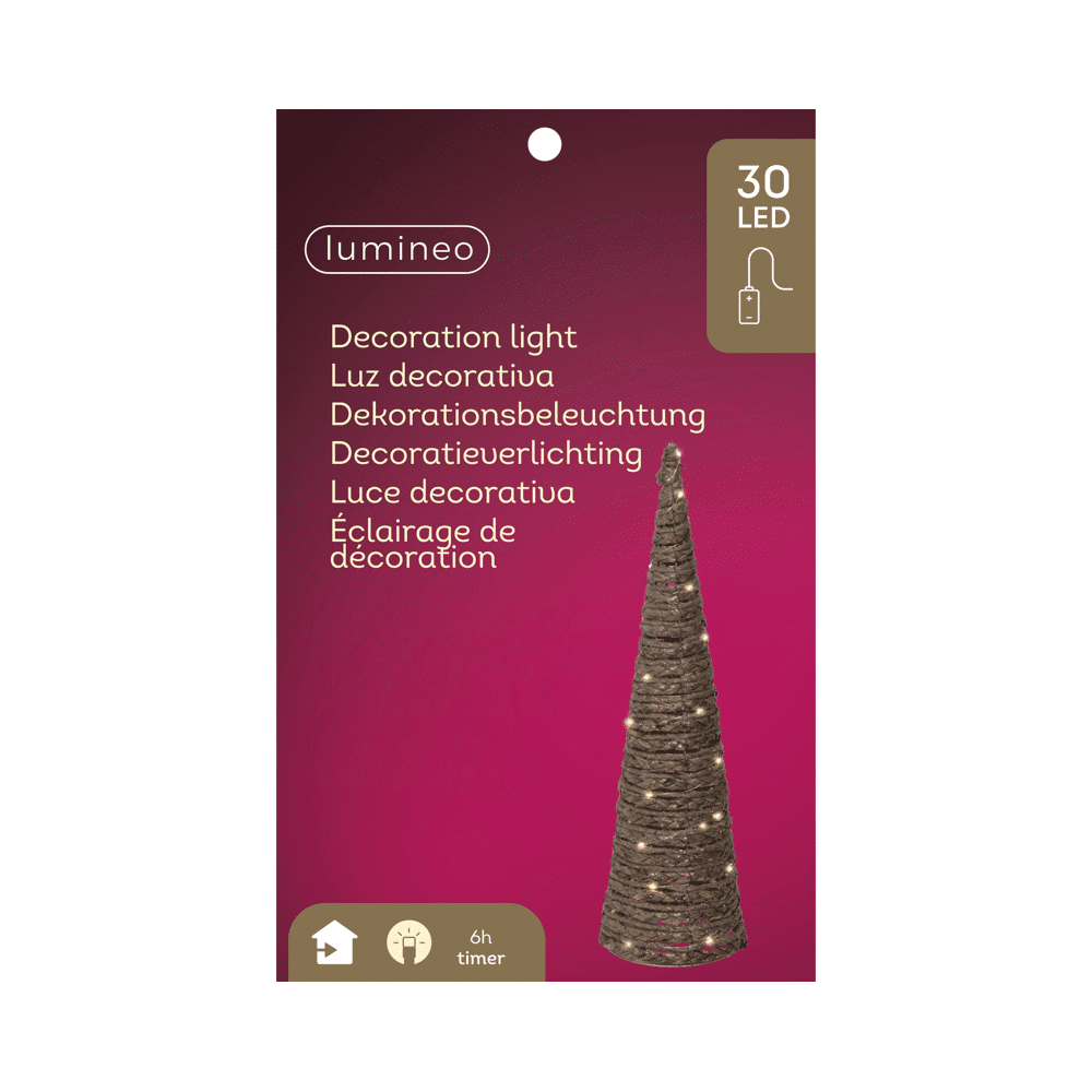 - **NOT FOUND** key: product.notifyMeModalProduct Lumineo LED Cone – Bruin – 60 cm – Warm Wit – Batterijen – Timerfunctie