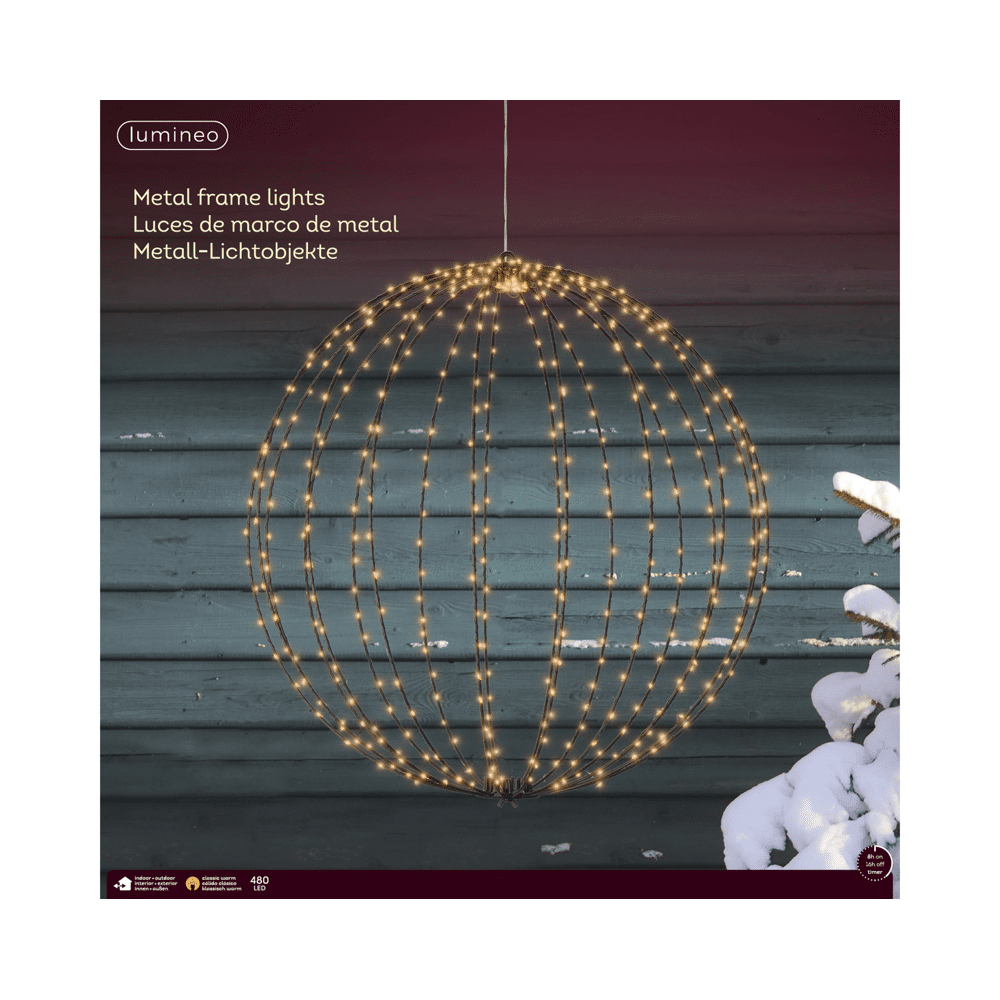 De Lumineo LED frame light bal zwart 58 cm is een tijdloze en sfeervolle blikvanger die jouw buitenruimte transformeert tot een magische en stijlvolle oase vol warmte en licht.