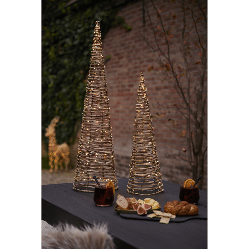 Tover jouw tuin om tot een sfeervolle winteroase met deze prachtige Lumineo LED kegel in beige wicker-look. Met zijn natuurlijke uitstraling en warme lichtkleur is deze verlichte kegel de perfecte decoratie voor buiten – ideaal om je tuin, terras of entree een stijlvolle en feestelijke sfeer te geven.