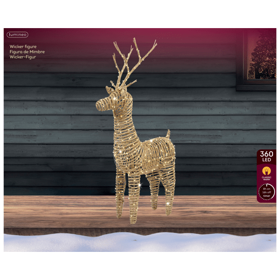 - **NOT FOUND** key: product.notifyMeModalProduct Lumineo Verlicht Rendier – Beige – Wicker – 104 × 60 × 24 cm – 360 Micro LED’s – Warm Wit – Buiten – Timerfunctie