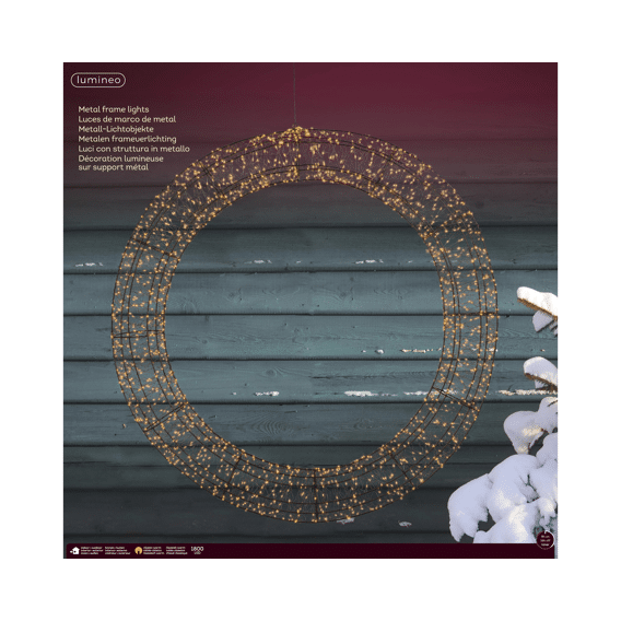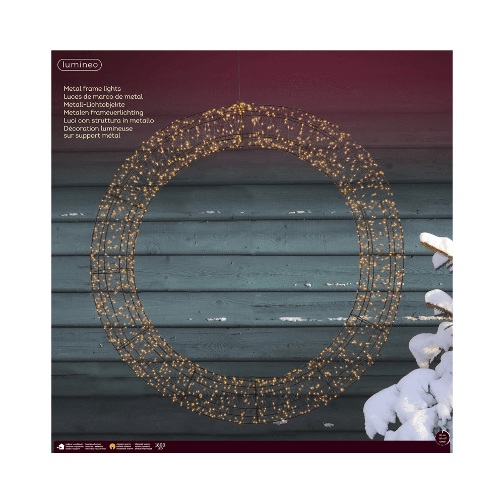 Maak van je tuin of terras een sfeervolle eyecatcher met deze indrukwekkende Lumineo verlichte krans van 116 cm. Het robuuste metalen frame in zwarte afwerking is speciaal ontworpen voor buitengebruik en straalt pure kwaliteit uit. Met maar liefst 1800 micro-leds in een klassieke warm witte tint zorgt deze krans voor een betoverende, feestelijke gloed die elke buitenruimte tot leven brengt.