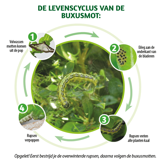 Omni insect werkt effectief tegen de buxusmot rupsen.Best gebruiken van zodra de rupsen gezien worden: vraatschade stopt directOpgelet: de rupsen overwinteren in de buxusplanten, bij de eerste warme lenteperiode slaan ze toe!