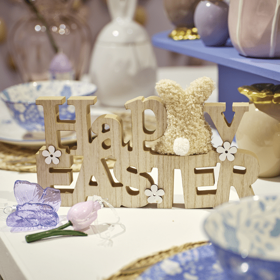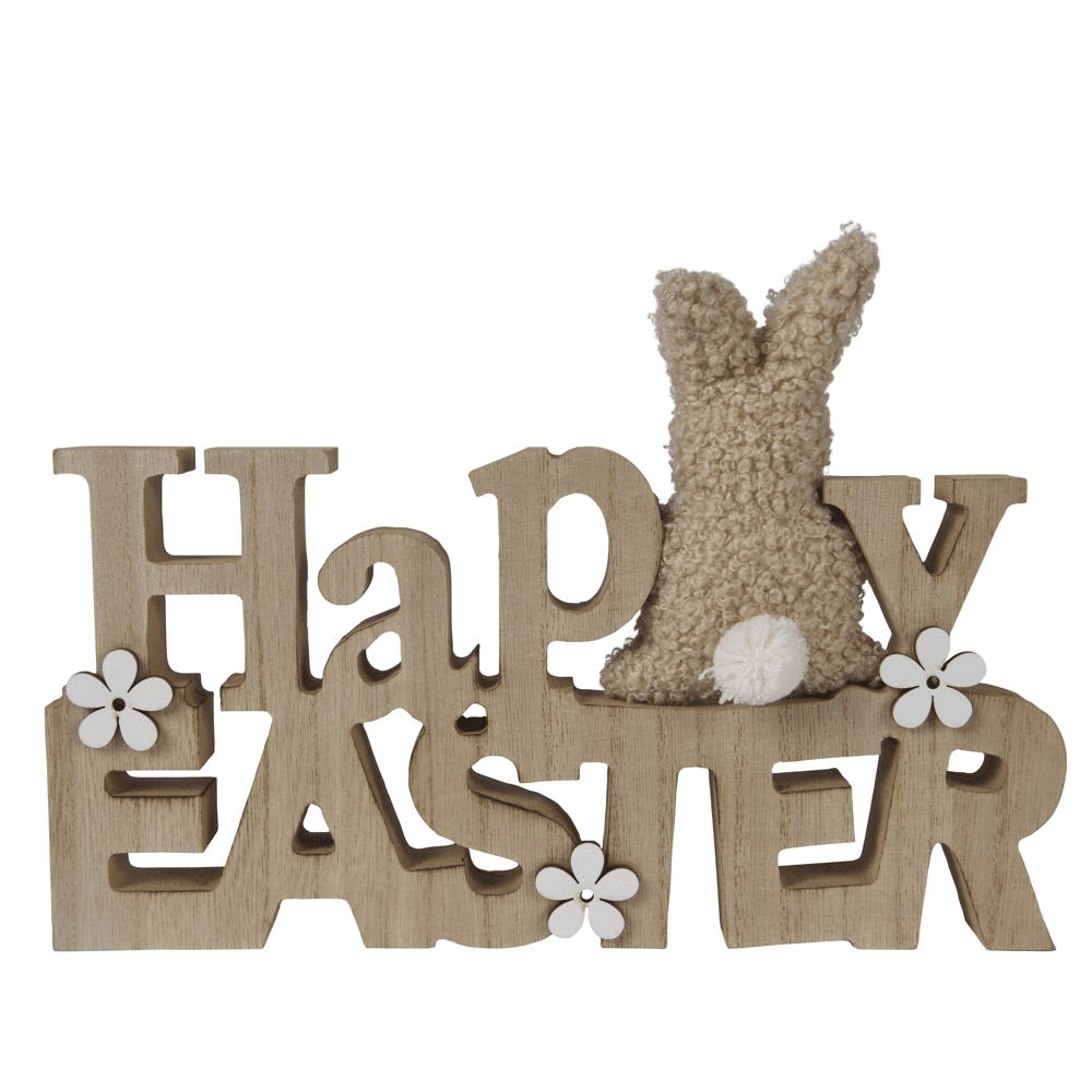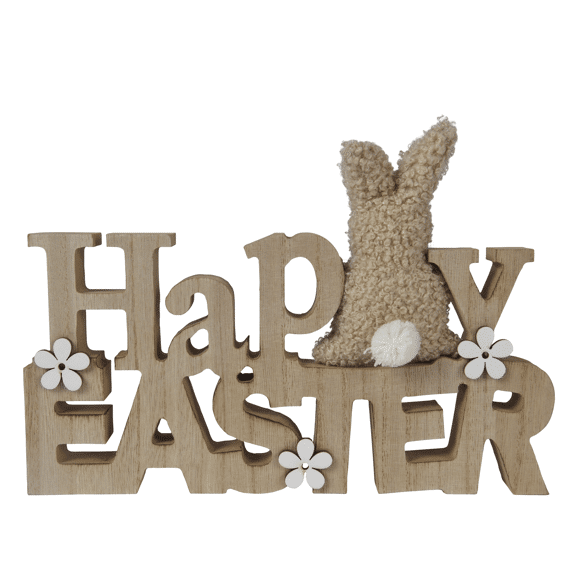 Decoris ornament met Pasen konijn en bloemen in bruinBreng een warme lentesfeer in je Home met deze charmante decoratie van Decoris. Dit ornament bestaat uit een elegante houten plank met de tekst 'Happy Pasen', vergezeld door een zacht, wollig Pasen konijntje en delicate bloemen. Het subtiel gevormde, rechthoekige ontwerp komt in een natuurlijke bruine tint die perfect past bij een rustiek of Scandinavisch interieur Stijl. Het lichte MDF Materiaal maakt het eenvoudig om het ornament op een dressoir, vensterbank of seizoensdisplay te plaatsen, waar het direct een uitnodigende sfeer creëert.- Lichtgewicht en gemakkelijk te verplaatsen - Gemaakt van MDF voor een strakke afwerking - Compact formaat: 24 cm breed, 16,5 cm hoog - Onderhoudsarm en eenvoudig schoon te maken met een droge doek