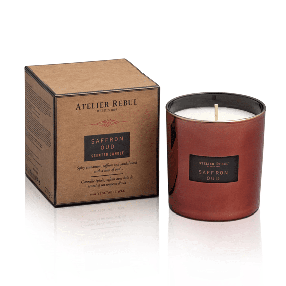 De geur van Saffron Oud neemt u mee op een smaakreis van kruiden met de noten van sandelhout en kostbare saffraan. De geurkaars zal, wanneer u hem aansteekt, zijn aroma zeer snel verspreiden in de omringde omgeving en de sfeer in uw huis doen veranderen. Bovendien is deze geurkaars verrijkt met plantaardige was van hoge kwaliteit.