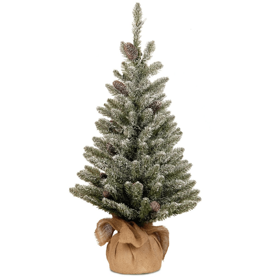 De Snowy Concolor kunstkerstboom van 91 cm hoog is een sfeervolle en compacte kerstboom met een natuurlijke, winterse uitstraling. De groene takken met sneeuwafwerking creëren een realistisch besneeuwd effect, terwijl de dennenappels zorgen voor een warme, natuurlijke touch. De decoratieve jute zak (burlap base) maakt het geheel stijlvol af en dient als stevige voet.