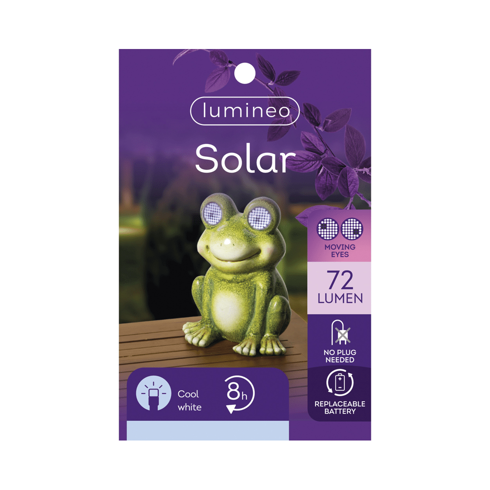 Lumineo Solar Tuinfiguur Kikker in MultiEen speels accent voor de tuin of het terras, verlichte huisjes met koel wit LED-licht dat ’s avonds sfeervol straalt. Deze charmante kikkerfiguur van polyresin werkt op solar energie en bevat een oplaadbaar batterij, waardoor het eenvoudig en milieuvriendelijk te gebruiken is zonder gedoe met bedrading. Met 104 SMD LEDs die tot 8 uur branden, zorgt het figuur voor opvallende verlichting om lang van te genieten. Het onderhoudsarme materiaal en multifunctioneel gebruik maken het tot een stijlvol en functioneel element in elke buitenruimte.Voordelen:• Draadloos en duurzaam dankzij solar energie en vervangbare batterij • Langdurige brandduur van circa 8 uur voor een langdurige sfeer • Charmant en stijlvol ontwerp als kleurrijk tuinobject • Eenvoudig te gebruiken zonder extra stroomvoorziening
