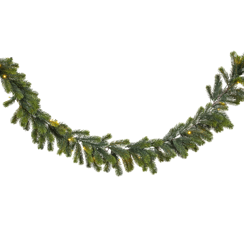 Everlands 180 cm Winnipeg verlichte Guirlande Deze guirlande is perfect voor het creëren van een feestelijke sfeer, zowel binnen als buiten. De Everlands 180 cm Winnipeg verlichte Guirlande is ontworpen om elke ruimte te transformeren in een winterwonderland. Gemaakt van duurzaam PE-materiaal, biedt deze guirlande een levensechte uitstraling dankzij de real needle-technologie. De 180 cm lange guirlande is voorzien van warm witte LED-verlichting die een gezellige gloed verspreidt. Met een diameter van 30 cm past de groene guirlande naadloos in elk decor. Voor de verlichting zijn 3 AA-batterijen nodig, wat betekent dat snoeren over de vloer tot het verleden behoren. De lampjes zijn 5 mm groot en zijn gelijkmatig verdeeld met een afstand van 15,24 cm tussen de lampjes. Een handige timerfunctie van 6 uur zorgt ervoor dat de verlichting zich automatisch in- en uitschakelt. - Lengte: 180 cm - Diameter: 30 cm - Materiaal: PE - LED-kleur: warm wit - Gebruiksduur: 40 uur met timerfunctie
