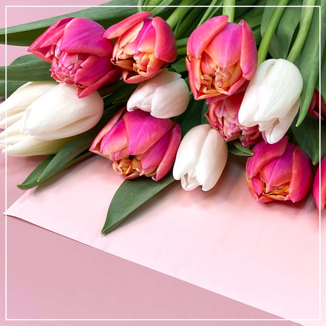 Gun je tulpen even de tijd om bij te komen na hun reis. Laat ze een uurtje in de vaas staan met de folie of het papier er nog omheen. Dit helpt hen om zich mooi recht te zetten en sterker te worden. Geduld wordt beloond!